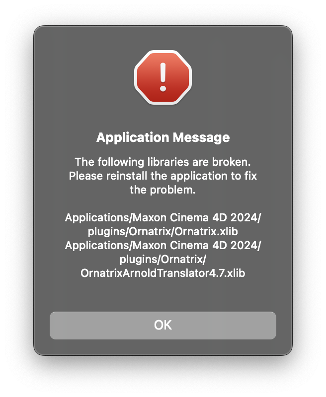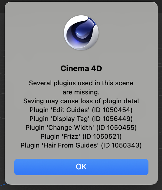 | Hey, hope you're well. I downloaded the 3.1.1.35468 Latest Stable for C4D 2025.0.2 running on Apple M3 Pro Sequoia 15.3.1 Both archive and installer don't seem to work for me. Is this latest build expected to work ? Opening a previously made project I get this pop up telling me it's missing the plugin.